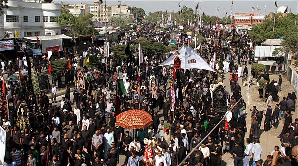 یوم عاشور پر لاہور میں نثارحویلی سے برآمد ہونے والا جلوس روایتی راستوں پر رواں دواں ہے جبکہ کراچی میں نشتر پارک سے مجلس کے بعد مرکزی جلوس روایتی راستوں سے ہوتا ہوا حسینیہ ایرانیان کھاردار میں اختتام پذیر ہوگا۔
