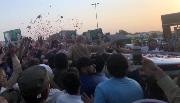 شہباز شریف نے ہاتھ ہلا کر کارکنوں کے نعروں کا جواب دیا، پارٹی رہنماؤں سے مصافحہ کیا اور قافلے کی شکل میں ایئرپورٹ سے ماڈل ٹاؤن میں اپنی رہائشگاہ پہنچے۔